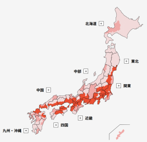 赤く染まっているエリアほど多く装着されており、太平洋側の比較的雪が少ないエリアで選ばれていることがわかります。