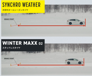 シンクロウェザー公式サイトの中で同社のタイヤと比較している動画やデータがあるのですが、比較されているスタッドレスがWM02(ウィンターマックス02)となっています。